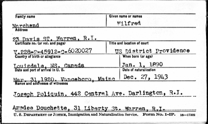 Wilfred Marchand Naturalization